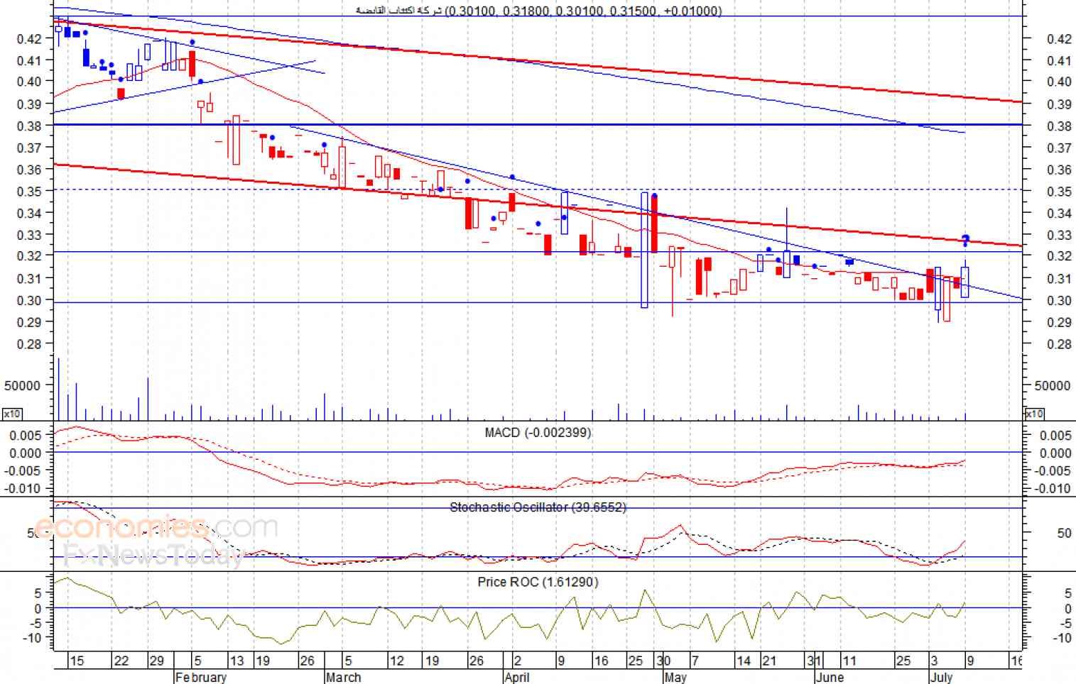· ومتوقع ان يكون النطاق السعري خلال جلسة اليوم بين مستوى الدعم وهو 0.30 وبين مستوى المقاومة هو 0.33 درهم