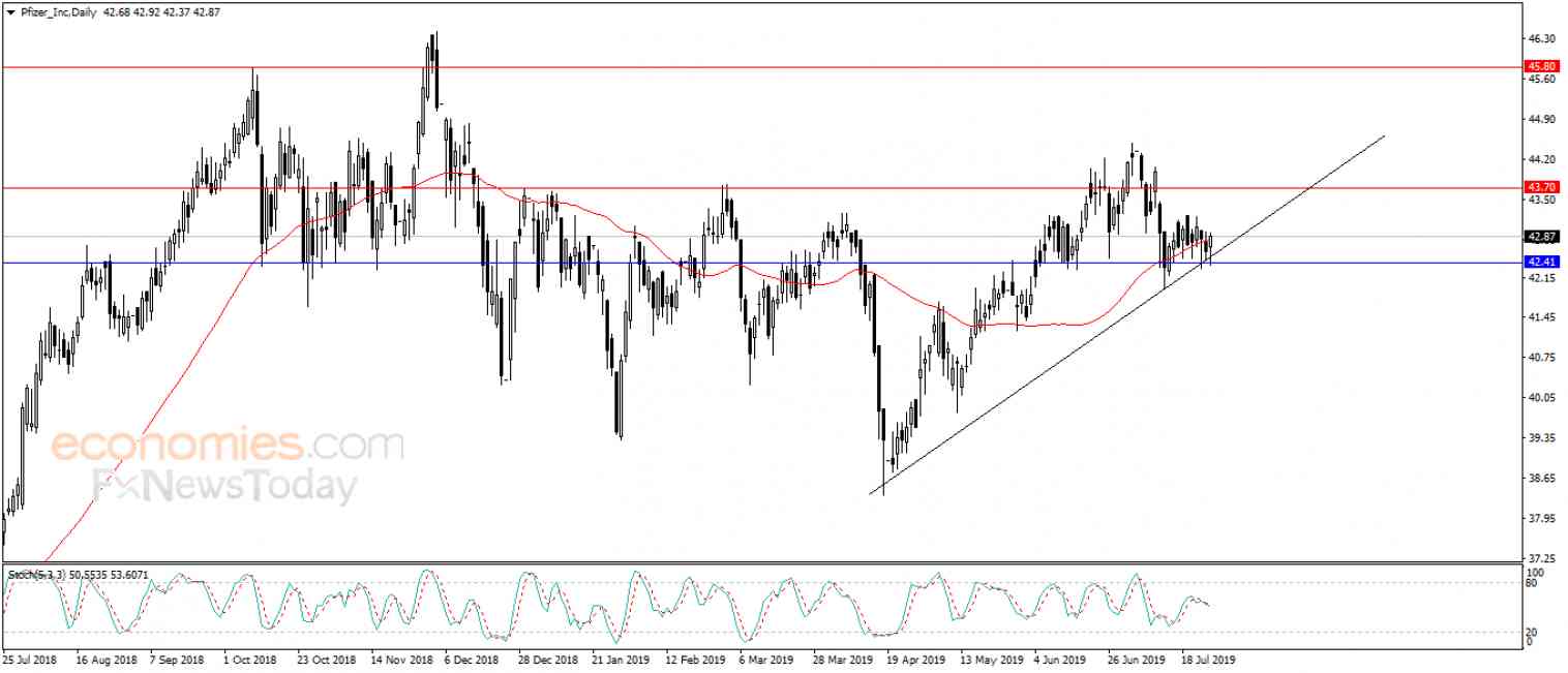 بعد انخفاض سهم فايزر PFIZER INC (PFE) ببداية تداولاته اليومية لليوم الجمعة ، ليستند بهذا الانخفاض إلى دعم خط اتجاه تصحيحي صاعد على المدى القصير ، ليتلقى دعماً إيجابياً منه ساعده على الارتداد ارتفاعاً ليحول خسائره تلك إلى مكاسب حتى تلك اللحظة ، ليحاول بذلك التخلص من الضغط السلبي لمتوسطه المتحرك البسيط لفترة 50 يوماً السابقة .
