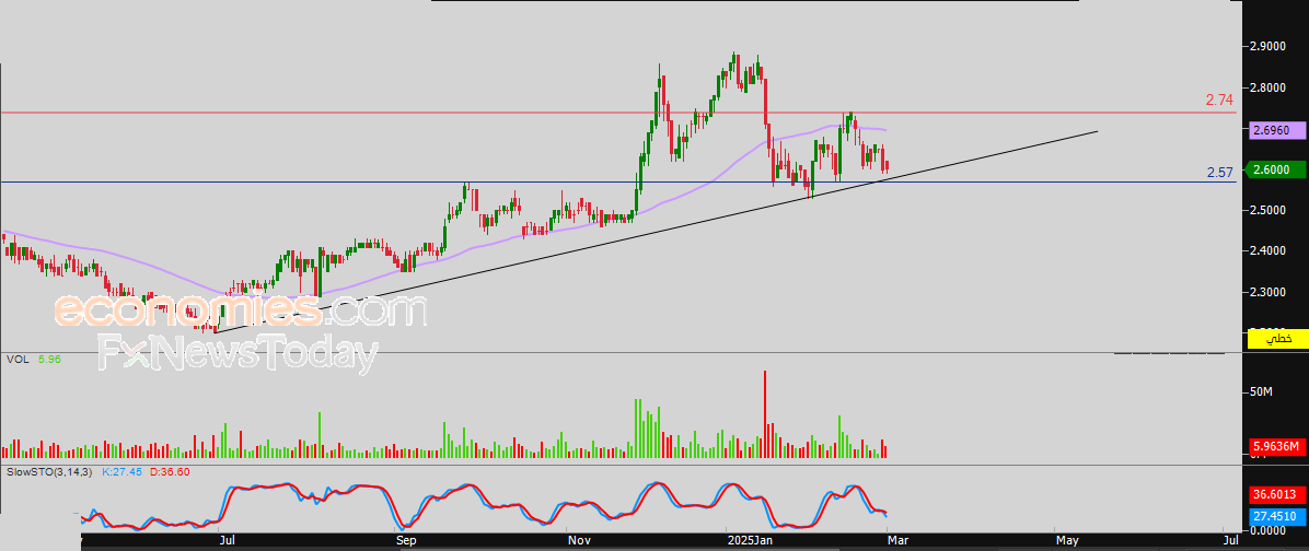 أغلق سعر سهم ديوا (DEWA) على عدم تغيير خلال تداولاته الأخيرة على المستويات اللحظية، وذلك وسط استمرار الضغط السلبي بسبب تداولاته دون متوسطه المتحرك البسيط لفترة 50 يوماً السابقة، مع توارد الإشارات السلبية بمؤشرات القوة النسبية، ويأتي هذا في ظل سيطرة الاتجاه الرئيسي الصاعد وتداولاته بمحاذاة خط اتجاه، لنعزي تراجع السهم مؤخراً ليحاول البحث عن قاع صاعد يتخذ منه قاعدة قد تساعده على اكتساب الزخم الإيجابي اللازم لاستعادة تعافيه.