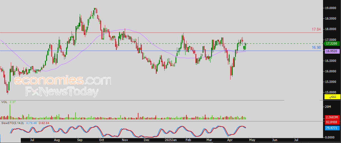 وعلى ضوء ذلك فتوقعاتنا تشير إلى المزيد من الصعود لسعر السهم خلال تداولاته القادمة، بشرط ثبات مستوى الدعم 16.98 درهم، ليستهدف مستوى المقاومة المهم 17.84 درهم استعداداً لمهاجمته.