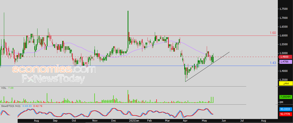 وعلى هذا الأساس فتوقعاتنا تشير إلى ارتفاع سعر السهم خلال تداولاته القادمة، طيلة ثبات الدعم 1.43 درهم، ليستهدف مستوى المقاومة 1.60 درهم.