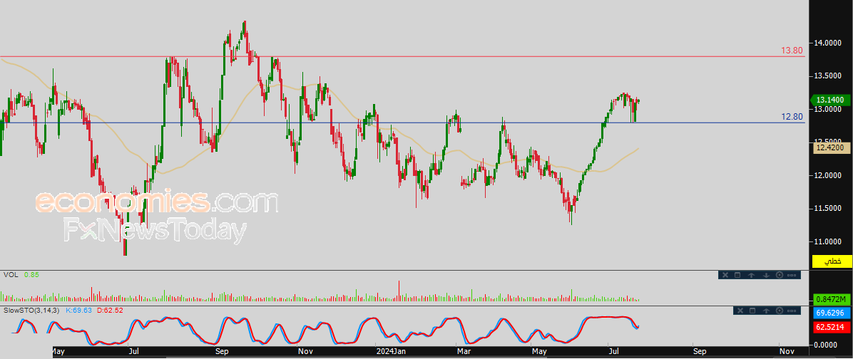 لهذا تشير توقعاتنا إلى المزيد من الصعود لسعر السهم خلال تداولاته القادمة، طيلة ثبات مستوى الدعم 12.80، ليستهدف مستوى المقاومة 13.80.