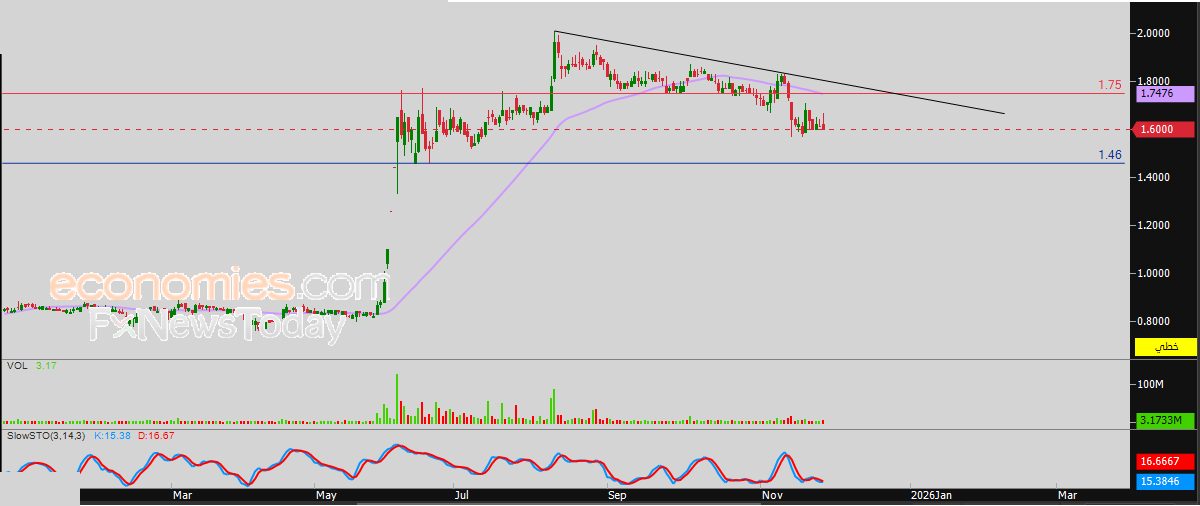 لهذا تشير توقعاتنا إلى هبوط سعر السهم خلال تداولاته القادمة، طيلة ثبات مستوى المقاومة 1.75 درهم، ليستهدف مستوى الدعم المحوري 1.46 درهم.