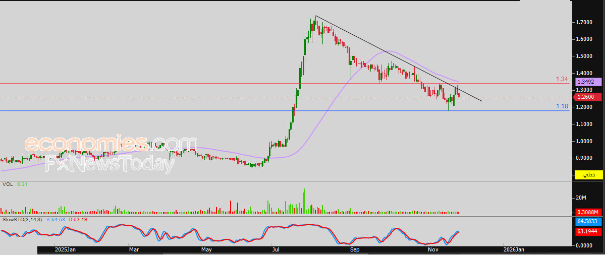 لهذا فتوقعاتنا تشير إلى هبوط سعر السهم خلال تداولاته القادمة، طيلة ثبات مستوى المقاومة 1.34 درهم، ليستهدف مستوى الدعم المهم 1.18 درهم.