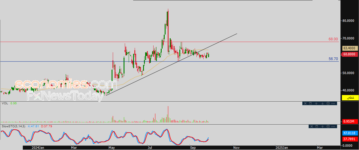 لهذا تشير توقعاتنا إلى المزيد من الهبوط لسعر السهم خلال تداولاته القادمة، ليستهدف مستوى الدعم المحوري والقريب 56.70 استعداداً لكسره.