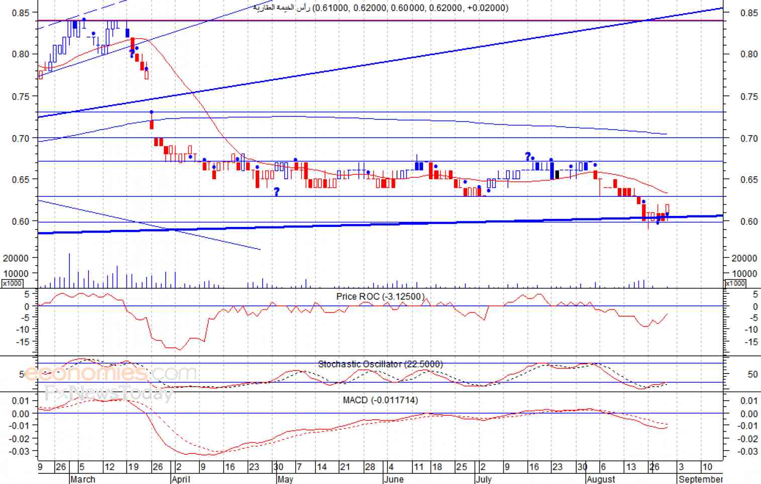 ومتوقع ان يكون النطاق السعري خلال جلسة اليوم بين مستوى الدعم هو 0.47 درهم وبين مستوى المقاومة هو 0.52 درهم