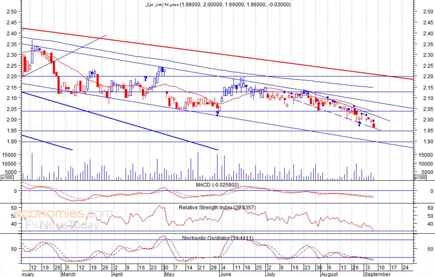 ومن المتوقع ان يكون النطاق السعري خلال جلسة اليوم بين مستوى الدعم هو 1.93 درهم وبين مستوى المقاومة هو 1.99 درهم