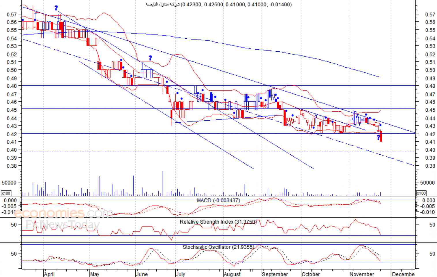 ومتوقع ان يكون النطاق السعري خلال جلسة اليوم بين مستوى الدعم هو 0.41 درهم وبين مستوى المقاومة هو 0.43 درهم
