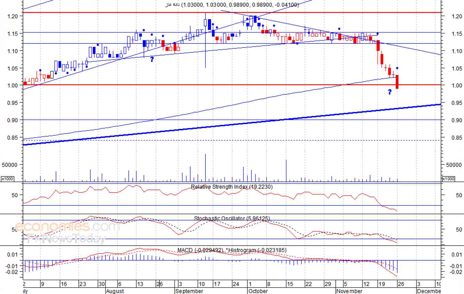 ومتوقع ان يكون النطاق السعري خلال جلسة اليوم بين مستوى الدعم هو 0.96 درهم وبين مستوى المقاومة هو 1.02 درهم