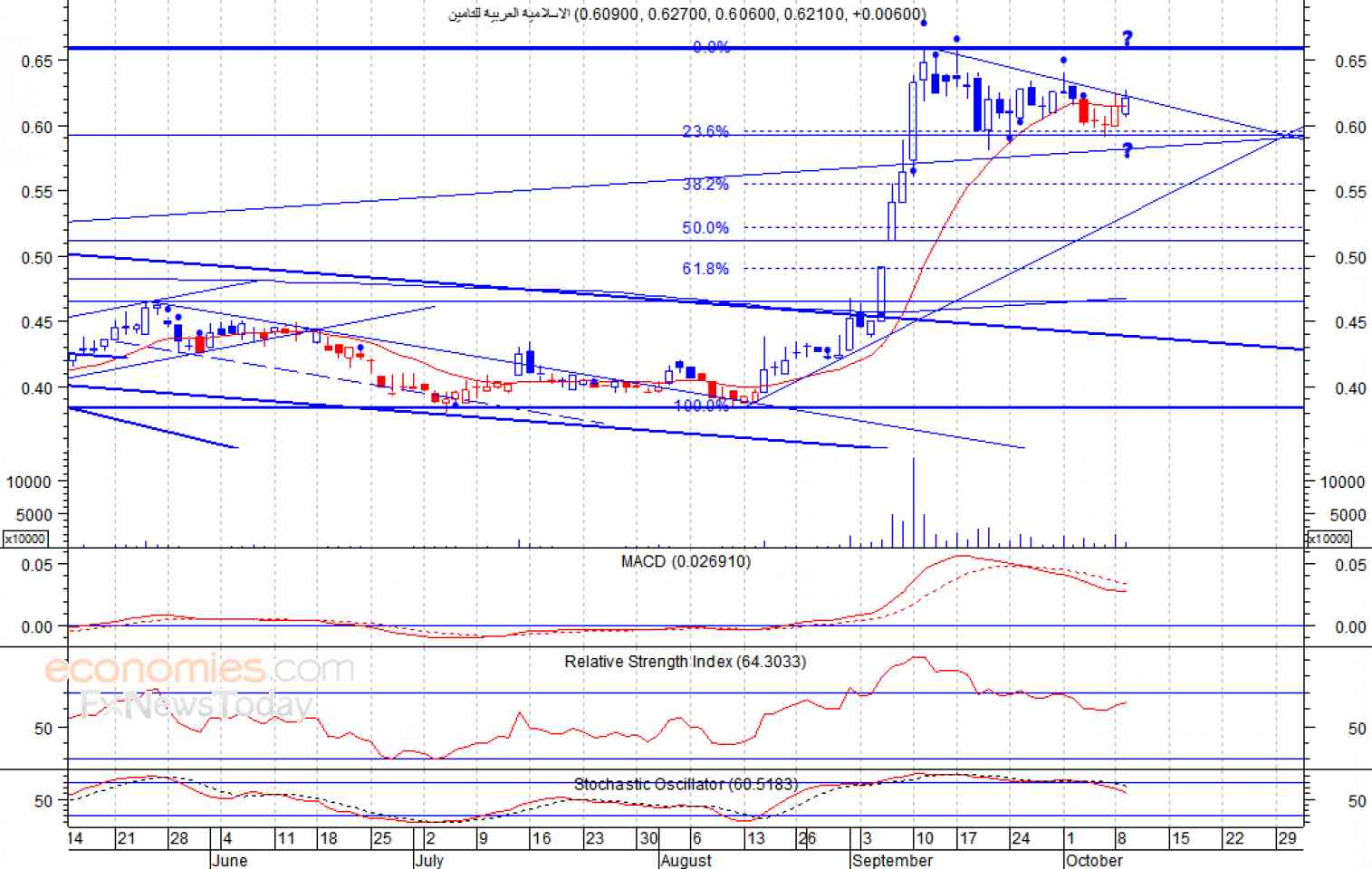 ومن المتوقع ان يكون النطاق السعري خلال جلسة اليوم بين مستوى الدعم وهو 0.61 وبين مستوى المقاومة هو 0.64 درهم