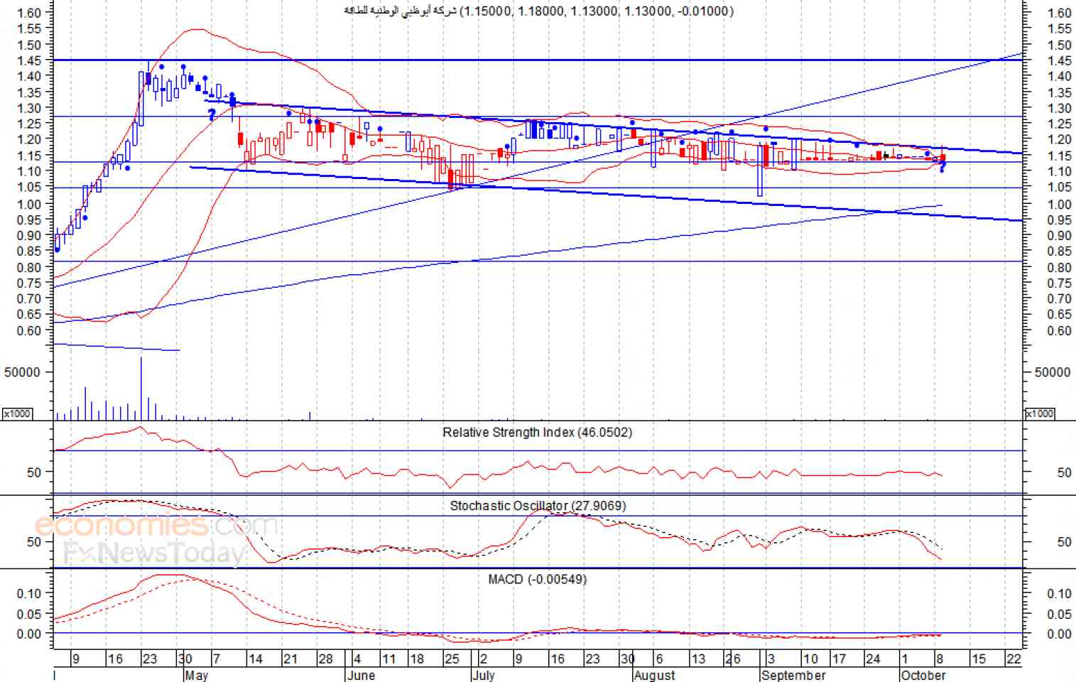 ومتوقع ان يكون النطاق السعري خلال جلسة اليوم بين مستوى الدعم هو 1.10 درهم وبين مستوى المقاومة هو 1.16 درهم