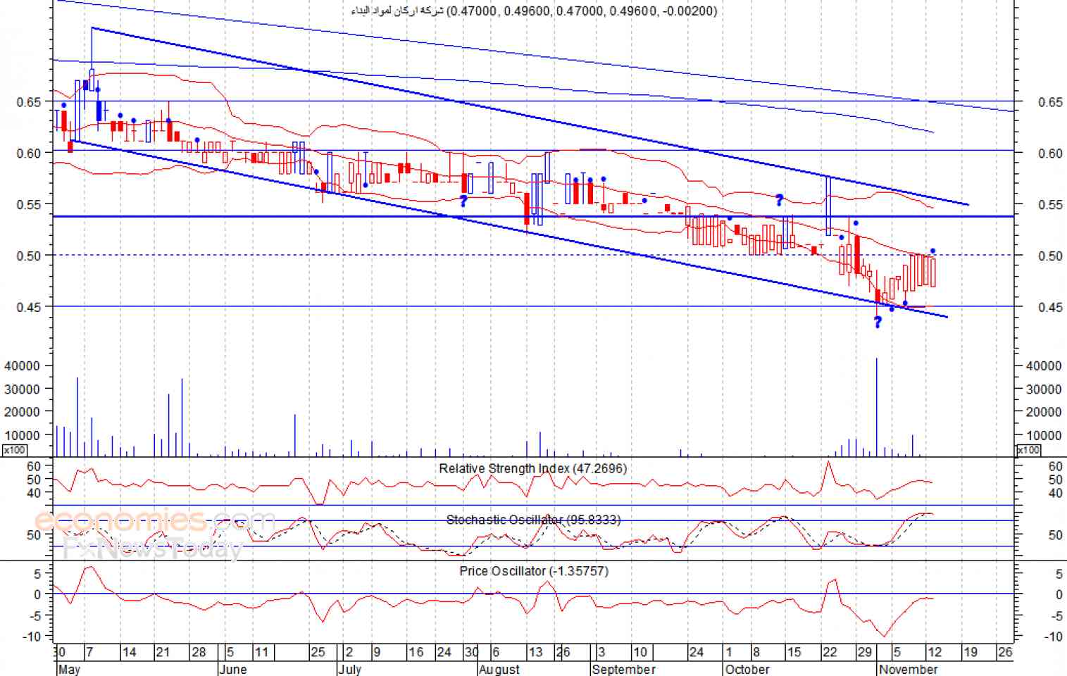 ومن المتوقع ان يكون النطاق السعري خلال جلسة اليوم بين مستوى الدعم وهو 0.47 وبين مستوى المقاومة هو 0.50درهم