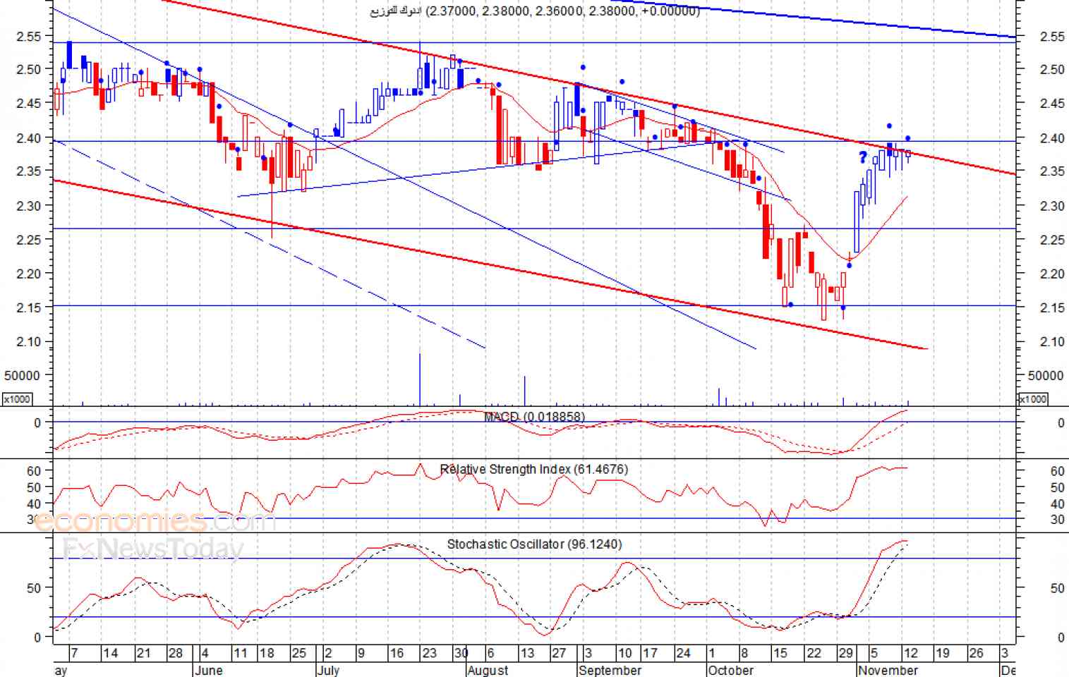 ومن المتوقع ان يكون النطاق السعري خلال جلسة اليوم بين مستوى الدعم وهو 2.36 وبين مستوى المقاومة هو 2.39 درهم