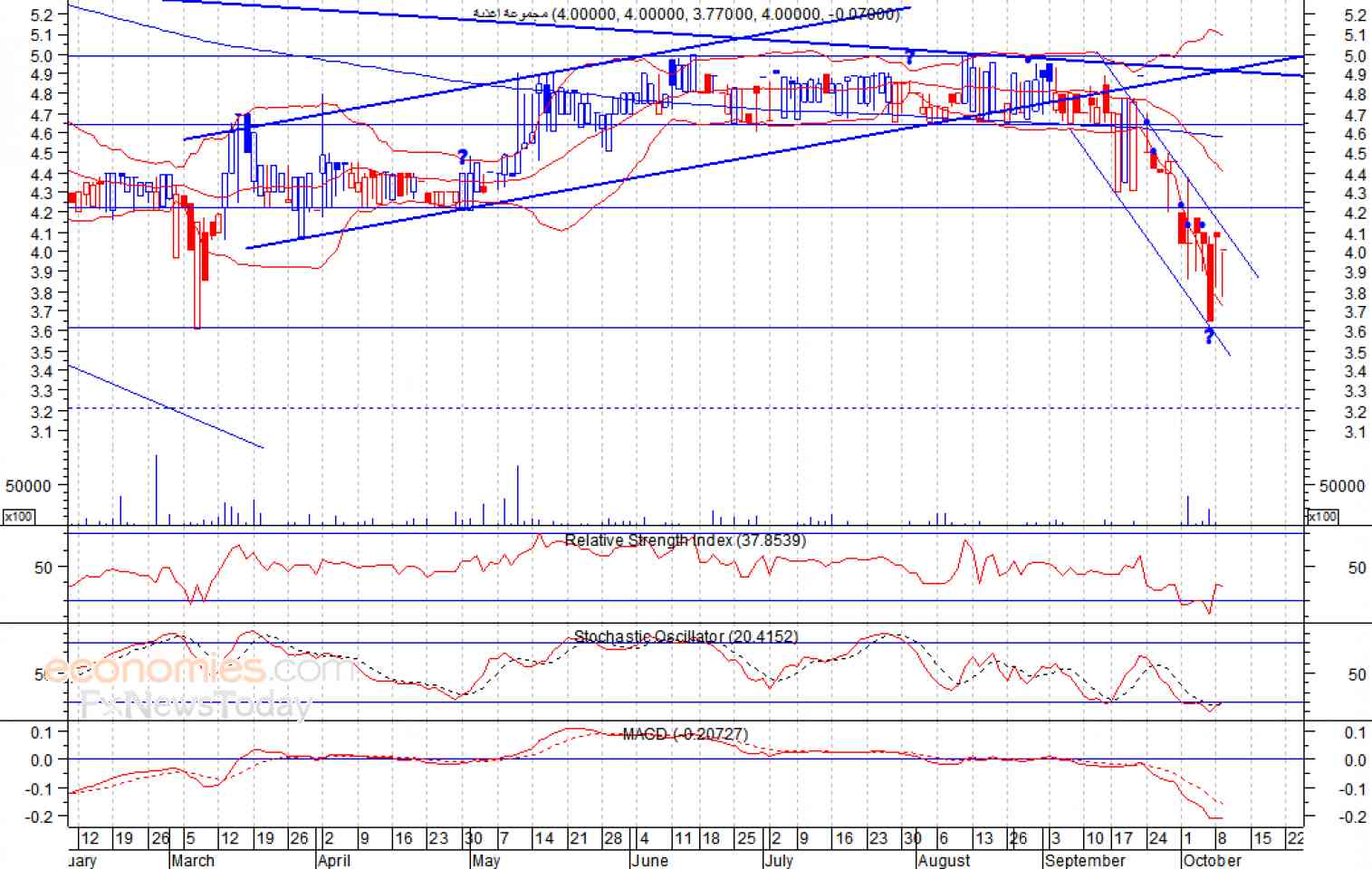 ومتوقع ان يكون النطاق السعري خلال جلسة اليوم بين مستوى الدعم هو 3.70 درهم وبين مستوى المقاومة هو 4.05 درهم