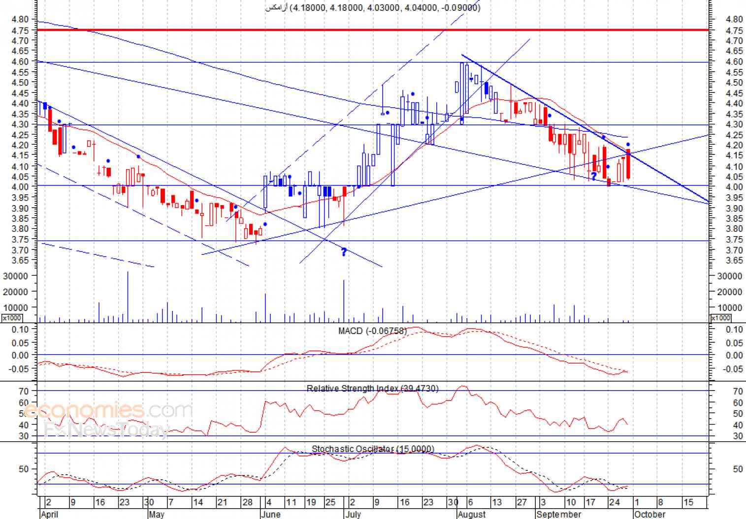 ومن المتوقع ان يكون النطاق السعري خلال جلسة اليوم بين مستوى الدعم هو 3.96 درهم وبين مستوى المقاومة هو 4.10 درهم