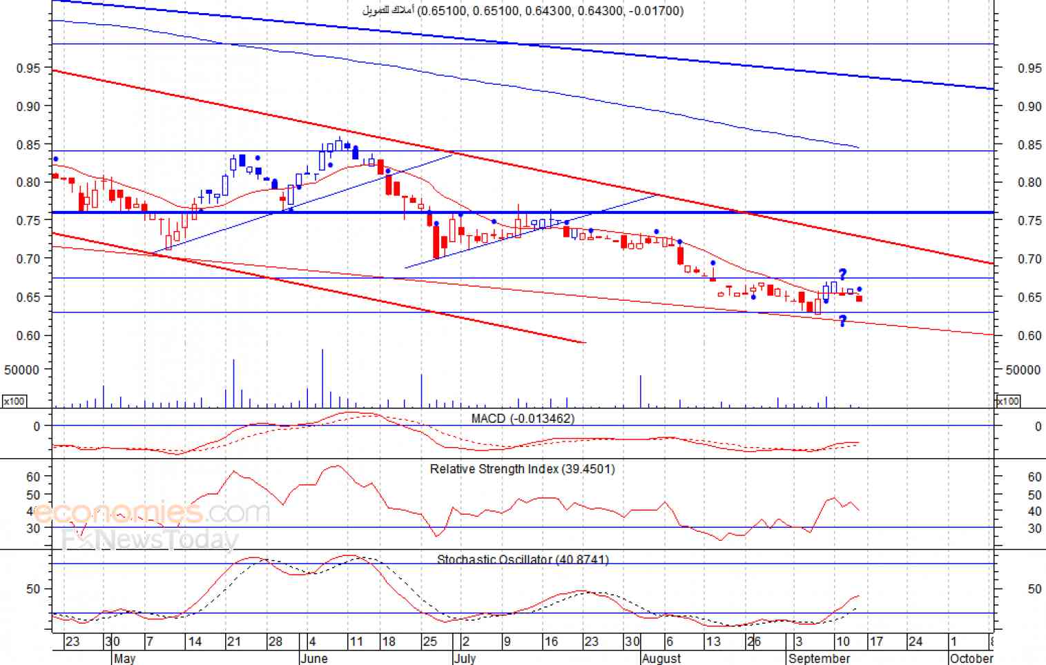 ومن المتوقع ان يكون النطاق السعري خلال جلسة اليوم بين مستوى الدعم هو 0.64 درهم وبين مستوى المقاومة هو 0.65 درهم