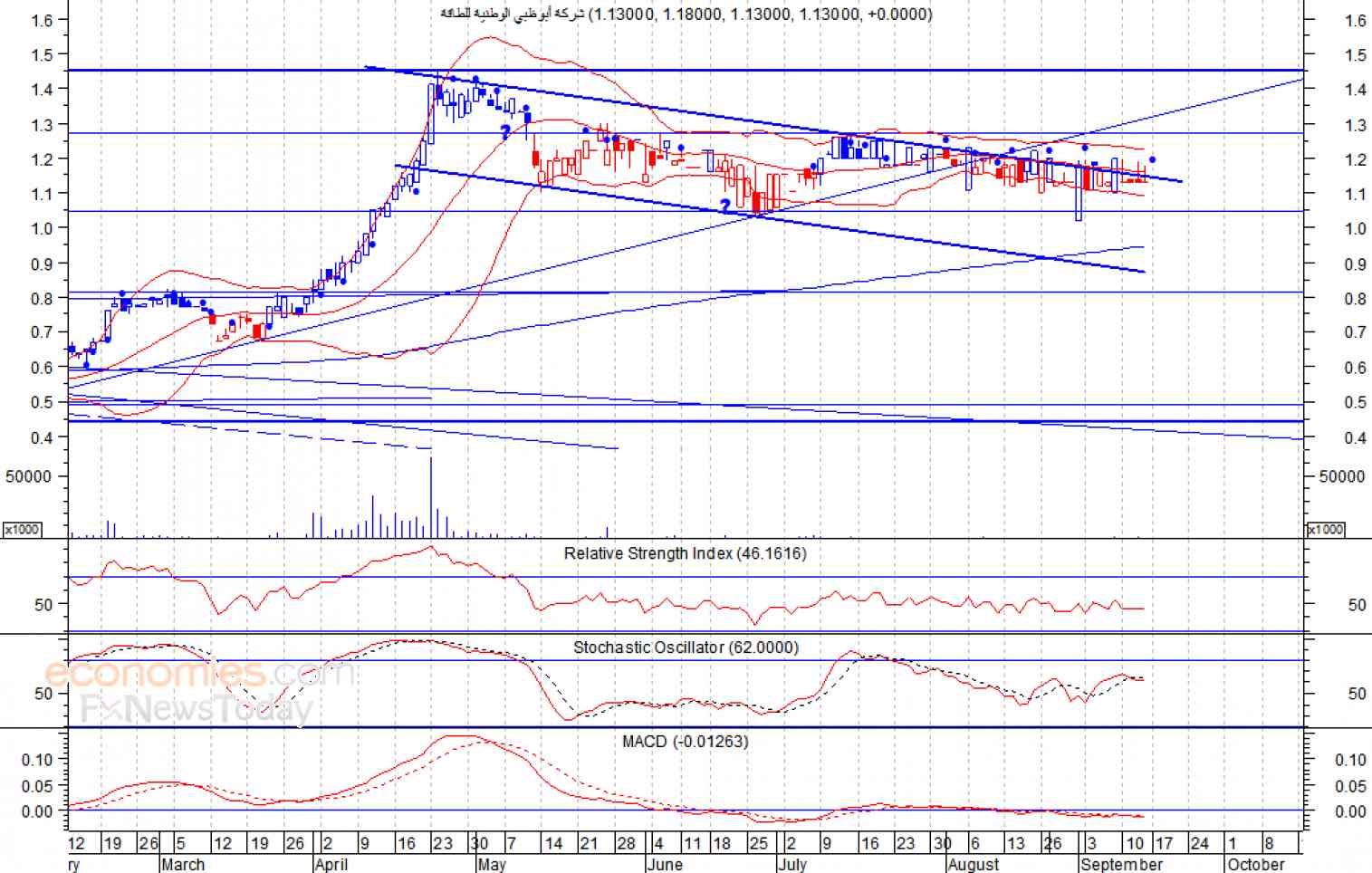ومتوقع ان يكون النطاق السعري خلال جلسة اليوم بين مستوى الدعم هو 1.10 درهم وبين مستوى المقاومة هو 1.16 درهم