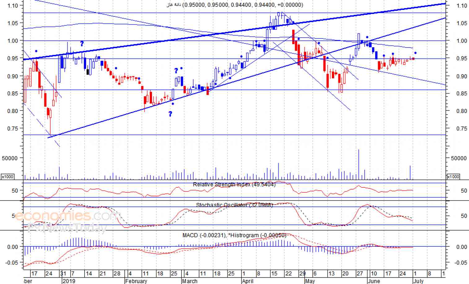 ومتوقع ان يكون النطاق السعري خلال جلسة اليوم بين مستوى الدعم هو 0.94 درهم وبين مستوى المقاومة هو 0.95 درهم