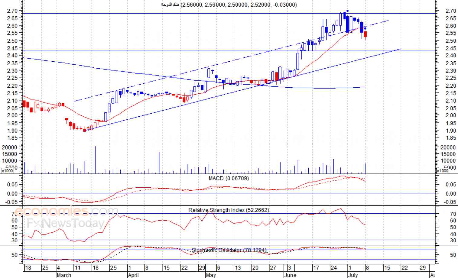 ومن المتوقع ان يكون النطاق السعري خلال جلسة اليوم بين مستوى الدعم هو 2.47 ريال وبين مستوى المقاومة هو 2.55 ريال