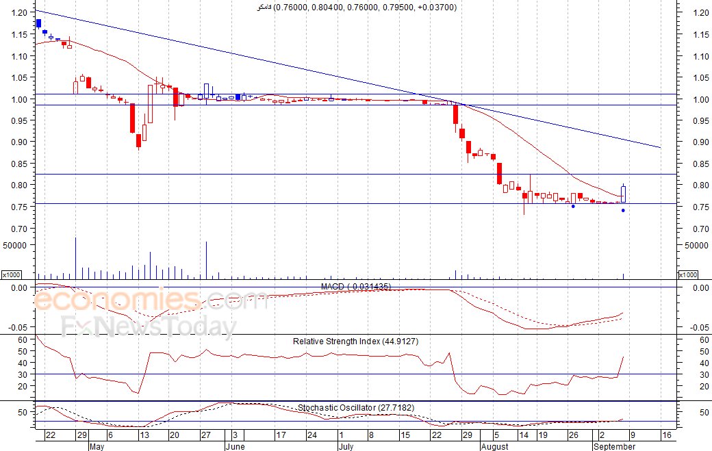ومن المتوقع ان يكون النطاق السعري خلال جلسة اليوم بين مستوى الدعم وهو 0.77 وبين مستوى المقاومة هو 0.83 ريال