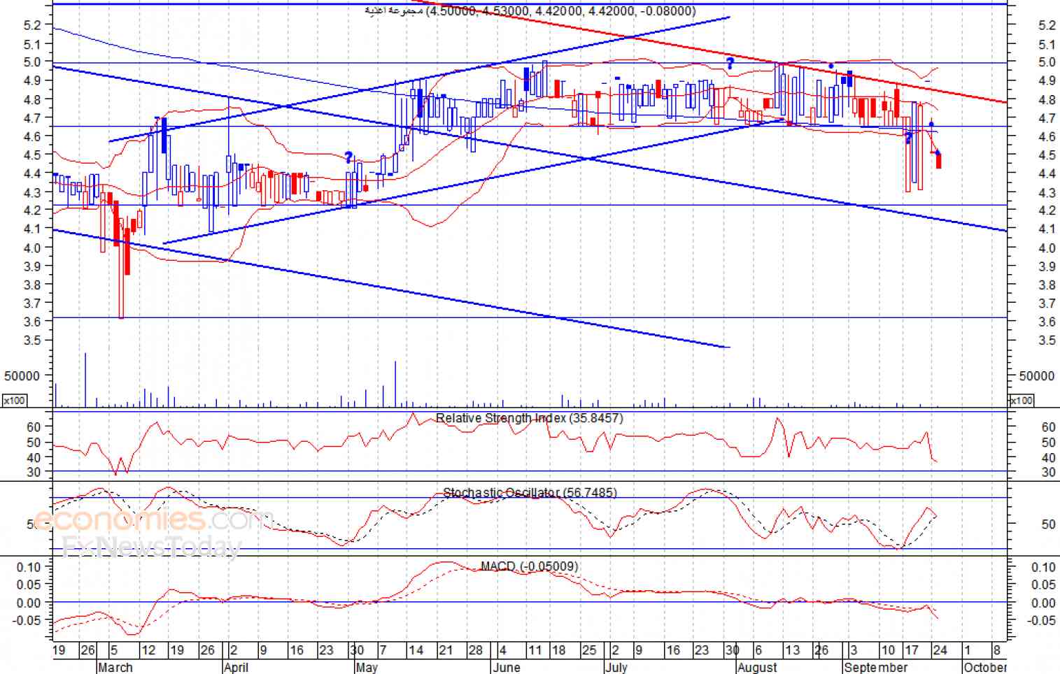 ومتوقع ان يكون النطاق السعري خلال جلسة اليوم بين مستوى الدعم هو 4.35 درهم وبين مستوى المقاومة هو 4.49 درهم