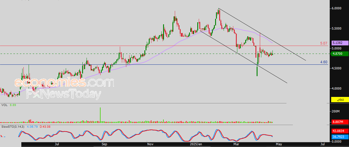 وعلى هذا الأساس فتوقعاتنا تشير إلى انخفاض سعر السهم خلال تداولاته القادمة، طيلة ثبات مستوى المقاومة 5.07 درهم، ليستهدف مستوى الدعم المهم 4.60 درهم.