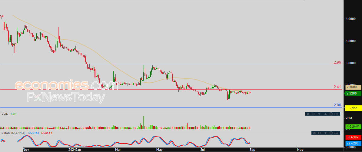 لذلك نحن نتوقع انخفاض سعر السهم خلال تداولاته القادمة، طيلة ثبات مستوى المقاومة 2.41، ليستهدف مستوى الدعم 2.17.
