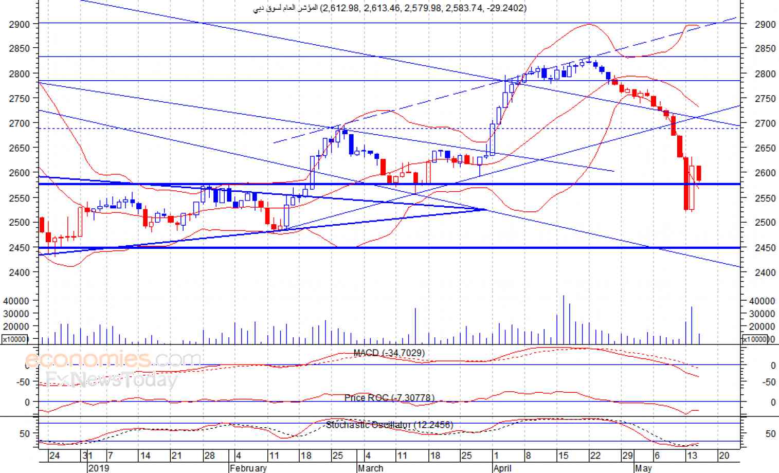 قلص المؤشر مكاسبه التي حققها خلال جلسة الثلاثاء الماضي، حيث اغلق امس الأربعاء عند مستوى 2583 نقطة، مقتربا من مستوى الدعم الحالي عند 2570 نقطة، والذي نتوقع ان يدفع بالمؤشر لاعلى مرة أخرى للوصول لمستوى المقاومة2700 نقطة خلال الأيام القادمة، الا ان هذا السيناريو مرهون بثبات السهم اعلى مستوى 2530 نقطة