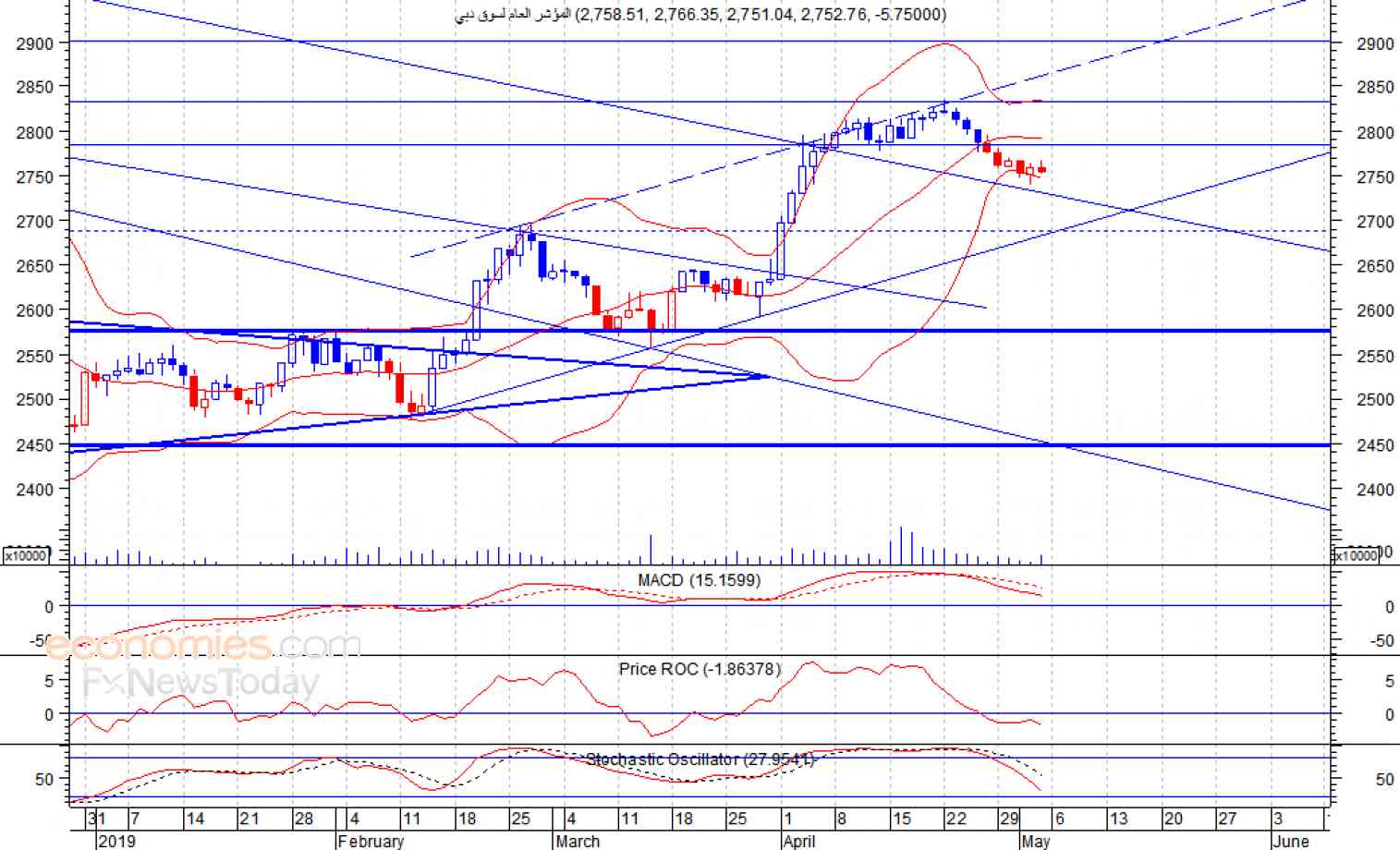 فقد المؤشر مكاسبه التي حققها خلال جلسة الخميس الماضي، حيث تراجع امس الاحد ليغلق عند مستوى 2752 نقطة، في ظل استمرار تحرك المؤشر في نطاق ضيق على المدى اليومي منذ الأسبوع الماضي، ويقترب المؤشر حاليا من مستوى المقاومة 2780 نقطة، والذي نتوقع ان يساهم في دفع المؤشر لاسفل لمستوى الدعم 2690 نقطة، شرط بقاء المؤشر اسفل مستوى 2800 نقطة.