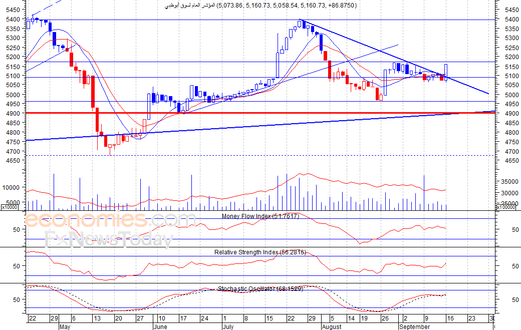 تمكن المؤشر من الارتفاع بقوة خلال ثاني جلسات الأسبوع الحالي، حيث اغلق عند مستوى 5160 نقطة، وهو اعلى مستوى يحققه المؤشر خلال الجلسة، متجاوزا بذلك خط الاتجاه الهابط قصير الأجل، ويواجه المؤشر حاليا مستوى المقاومة 5170 نقطة، والذي في حالة تجاوزه فسيواصل المؤشر ارتفاعه لمستوى مقاومته التالي عند 5400 نقطة.