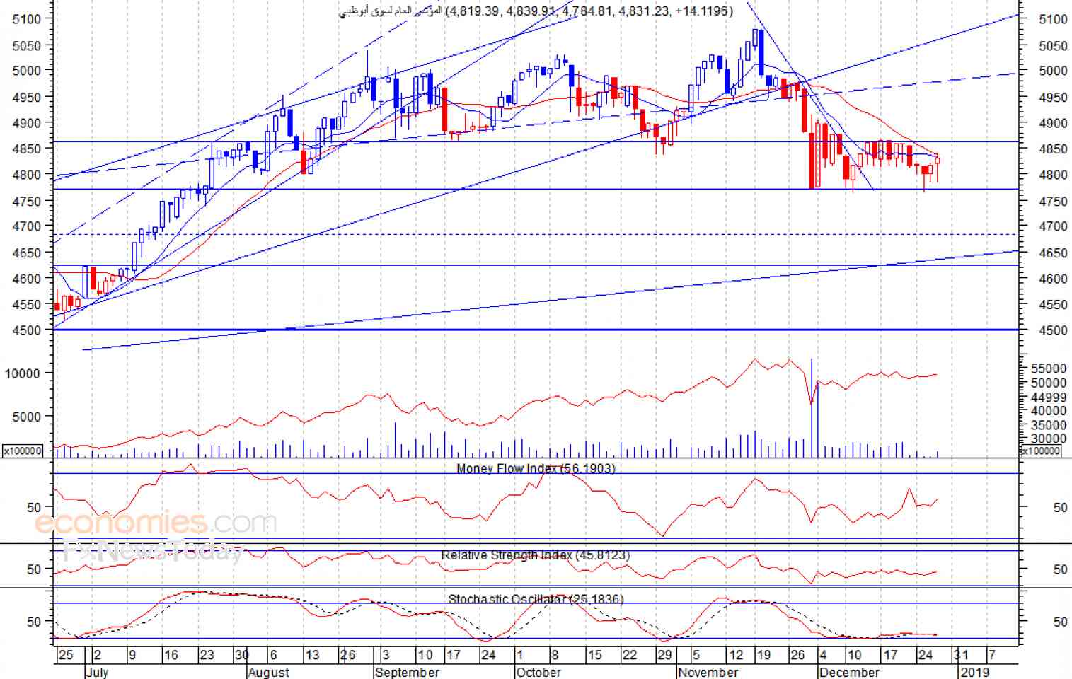 تمكن المؤشر من الارتفاع لثاني جلسة على التوالي، حيث اغلق عند مستوى 4831 نقطة، وذلك بعدما سجل انخفاض بلغ 4784 نقطة، ملامسا لمتوسطه المتحرك لـ 20 يوم، وفي ظل حيادية المؤشرات الفنية في الاجل القصير، مما يجعلنا نفضل الانتظار حتى اختراق المؤشر لاحد المستويين 4770 نقطة ومستوى 4860 نقطة، للوقوف على الاتجاه القادم للمؤشر، لذلك نوصي بمراقبة المؤشر عن قرب خلال الأيام القادمة خاصة الأسبوع الحالي.
