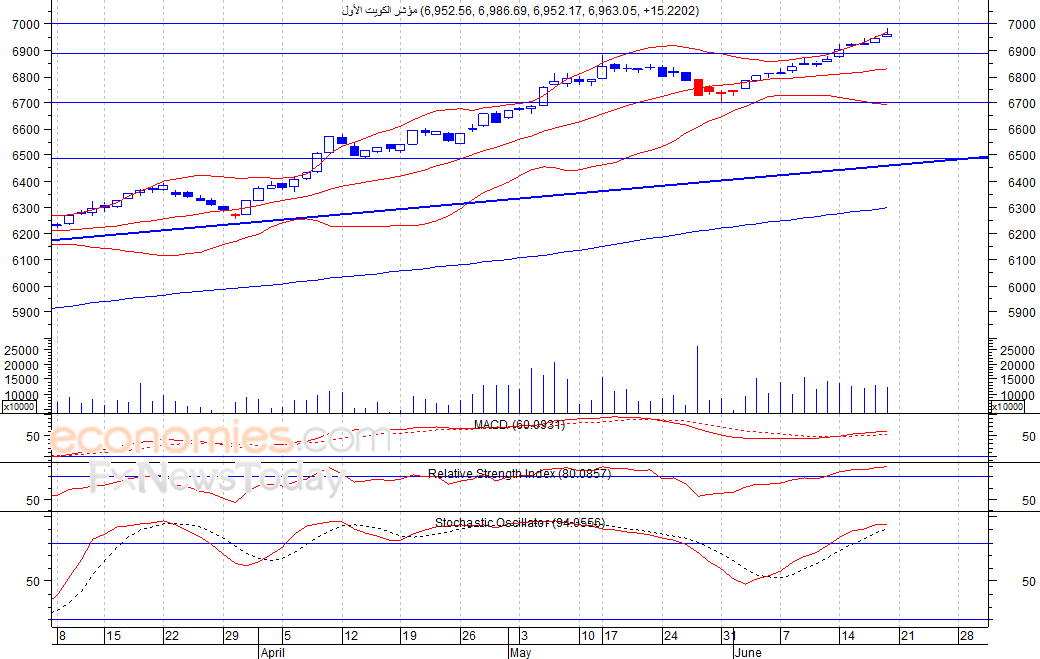 ومتوقع ان يكون النطاق السعري خلال اليوم الحالي بين مستوى الدعم هو 6,948 بينما مستوى المقاومة هو 6,982 نقطة