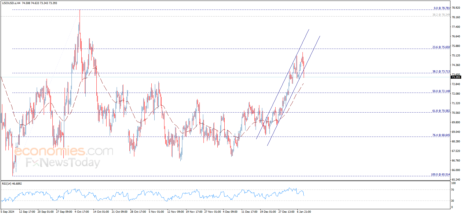 يواجه سعر النفط ضغط سلبي قوي، حيث ارتد هبوطاً ليكسر مستوى 73.70$ ويحاول الثبات دونه، مما يقدّم إشارات على توجه السعر للتحوّل إلى الانخفاض وتكبّد خسائر إضافية تصل إلى 72.15$، تأكيد التحوّل بالاتجاه يتمثّل بإغلاق الشمعة اليومية دون المستوى المكسور، مع الإشارة إلى أن التداول فوق 73.70$ مجدداً سينعش السيناريو الإيجابي الذي يتواجد هدفه الأول عند 75.65$.
