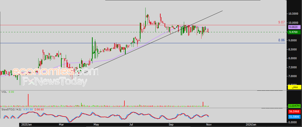 لهذا تشير توقعاتنا إلى انخفاض سعر السهم خلال تداولاته القادمة، طيلة ثبات مستوى المقاومة 9.87 درهم، ليستهدف مستوى الدعم 8.85 درهم.
