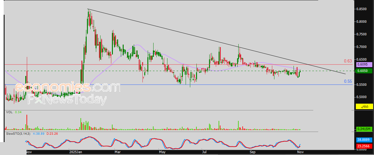 لذلك فتوقعاتنا تشير إلى عودة انخفاض سعر السهم خلال تداولاته القادمة، طيلة ثبات مستوى المقاومة 0.63 درهم، ليستهدف مستوى الدعم المحوري 0.55 درهم.