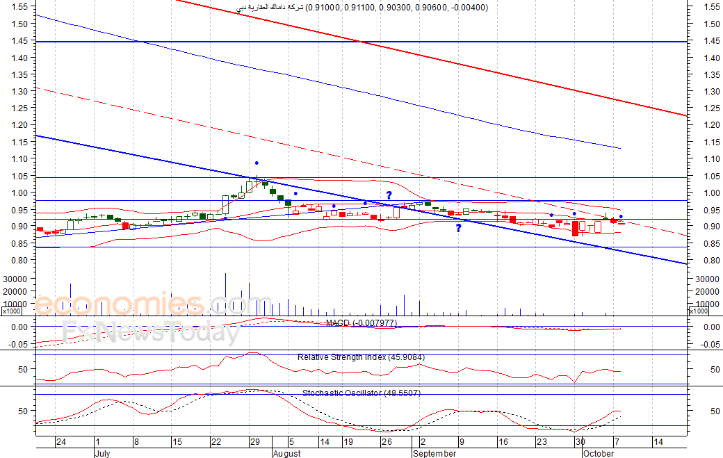 ومن المتوقع ان يكون النطاق السعري خلال جلسة اليوم بين مستوى الدعم هو 0.89 درهم وبين مستوى المقاومة هو 0.91 درهم
