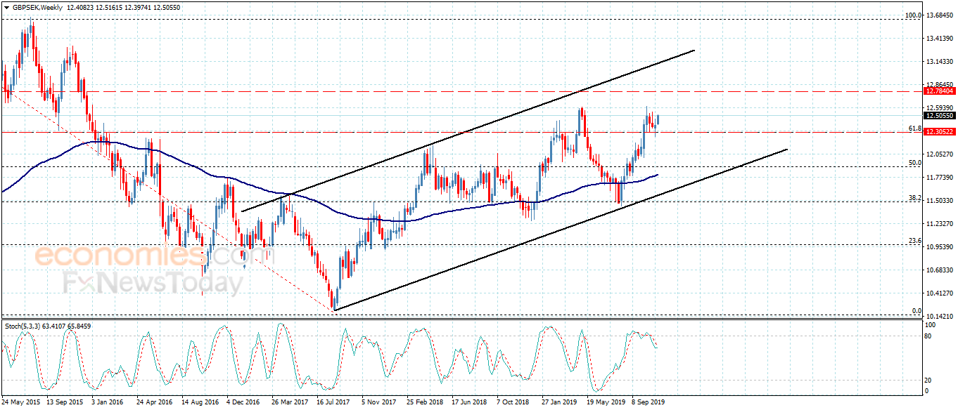 استغل سعر الزوج قوة الدعم الإضافي المستقر عند 12.3050 ليبدأ بتشكيل تداولات صاعدة جديدة وليستقر بذلك حول مستوى 12.50000, كذلك الثبات المتكرر ضمن محاور القناة الصاعدة يشكل عامل رئيسي لترجيح المزيد من التداولات الإيجابية لنتوقع بذلك استهداف السعر لمستوى 12.6350 وصولا للحاجز التالي المتمركز عند 12.7840.
