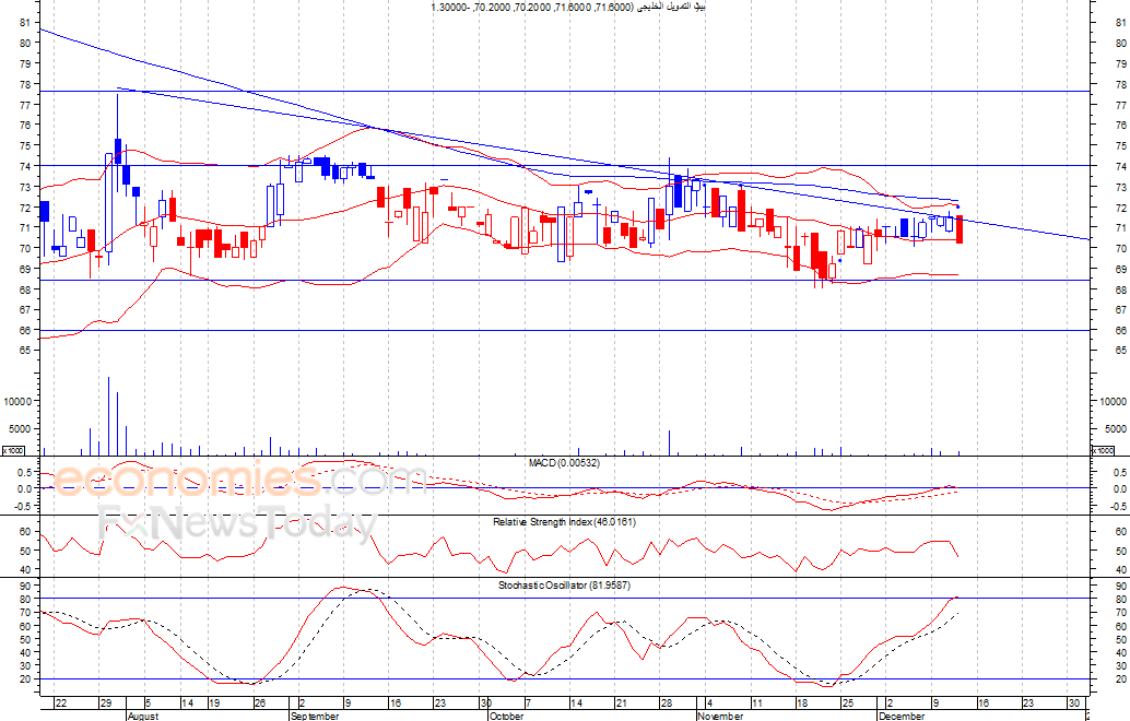 من المتوقع ان يكون النطاق السعري خلال جلسة اليوم بين مستوى الدعم وهو 13.6 وبين مستوى المقاومة هو 14.2 فلس