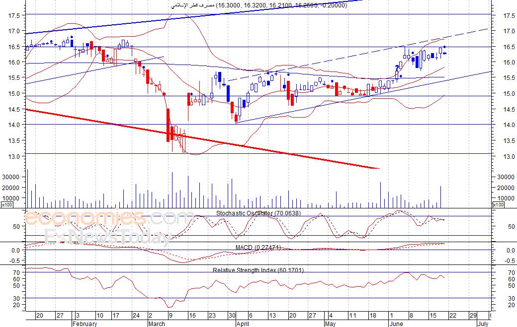 من المتوقع ان يكون النطاق السعري خلال جلسة اليوم بين مستوى الدعم هو 16.15 ريال وبين مستوى المقاومة هو 16.31 ريال