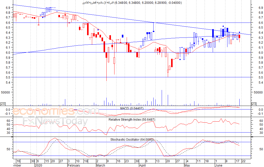 عمق السهم من عمليات جني الأرباح حيث اغلق امس الأحد عند مستوى 6٫289 ريال، مصحوبا بارتفاع ضخم في كمية التداول، وهو ما يعد إشارة سلبية، كما انزلق السهم اسفل متوسطه المتحرك لـ 20 يوم، وهو ما يفتح الباب أمام السهم لمزيد من الانخفاض لمستوى الدعم 6 ريال مرة اخرى، شرط بقاء السهم اسفل مستوى 6٫50 ريال.