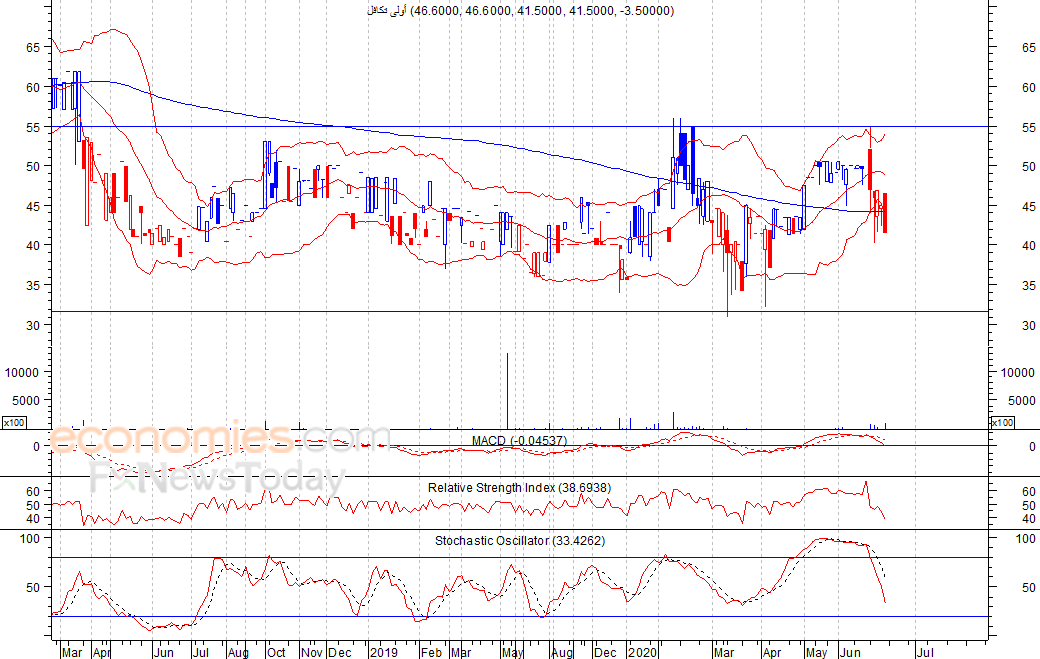 متوقع ان يكون النطاق السعري خلال اليوم الحالي بين مستوى الدعم هو 39.8 بينما مستوى المقاومة هو 44.9 فلس