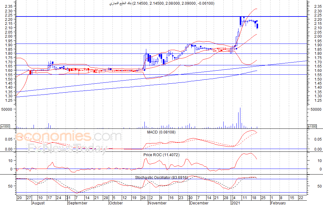 من المتوقع ان يكون النطاق السعري خلال جلسة اليوم بين مستوى الدعم هو 2.04 ريال وبين مستوى المقاومة هو 2.13 ريال