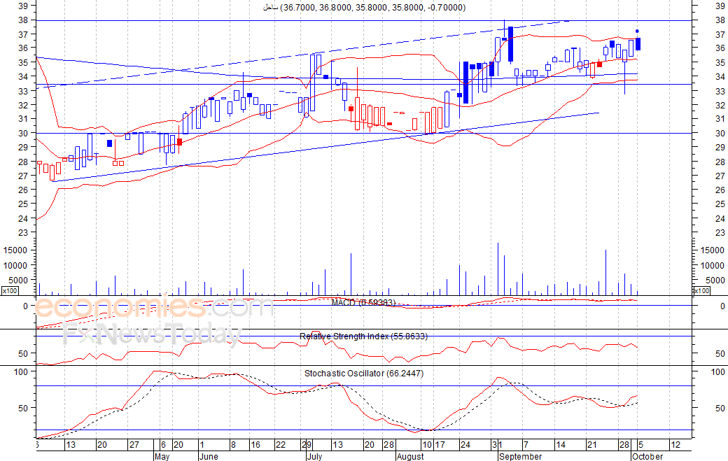 متوقع ان يكون النطاق السعري خلال اليوم الحالي بين مستوى الدعم هو 35.5 بينما مستوى المقاومة هو 36.5 فلس