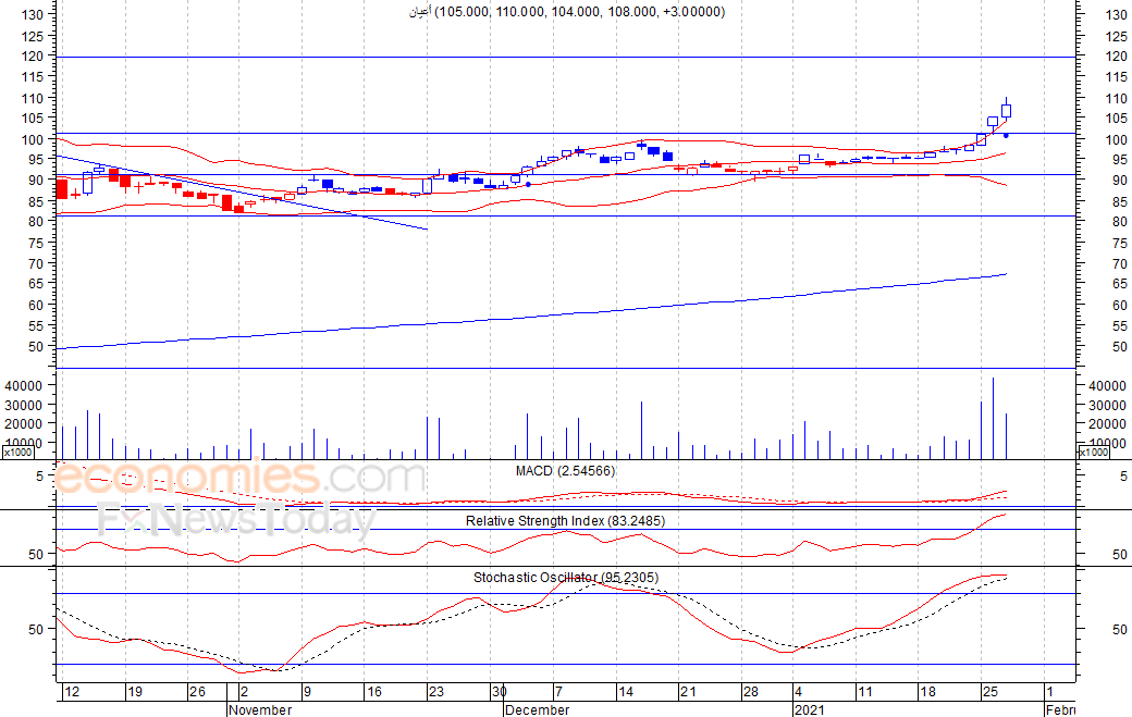 متوقع ان يكون النطاق السعري خلال اليوم الحالي بين مستوى الدعم هو 105 بينما مستوى المقاومة هو 111 فلس