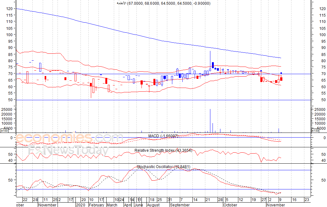 متوقع ان يكون النطاق السعري خلال اليوم الحالي بين مستوى الدعم هو 63.1 بينما مستوى المقاومة هو 67.2 فلس