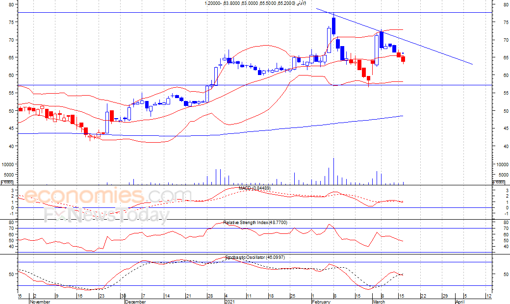 ومن المتوقع ان يكون النطاق السعري خلال جلسة اليوم بين مستوى الدعم هو 61.6 فلس وبين مستوى المقاومة هو 65.2 فلس