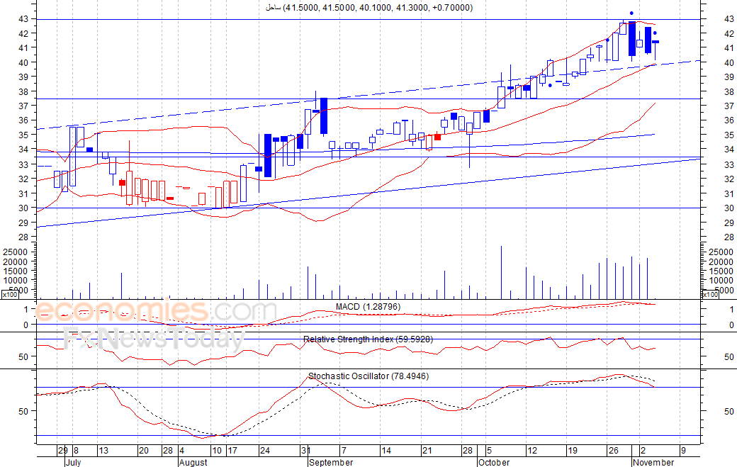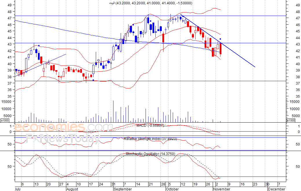 متوقع ان يكون النطاق السعري خلال اليوم الحالي بين مستوى الدعم هو 40.5 بينما مستوى المقاومة هو 42.7 فلس