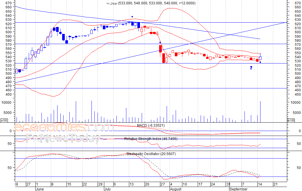 متوقع ان يكون النطاق السعري خلال اليوم الحالي بين مستوى الدعم هو 532.3 بينما مستوى المقاومة هو 548.3 فلس