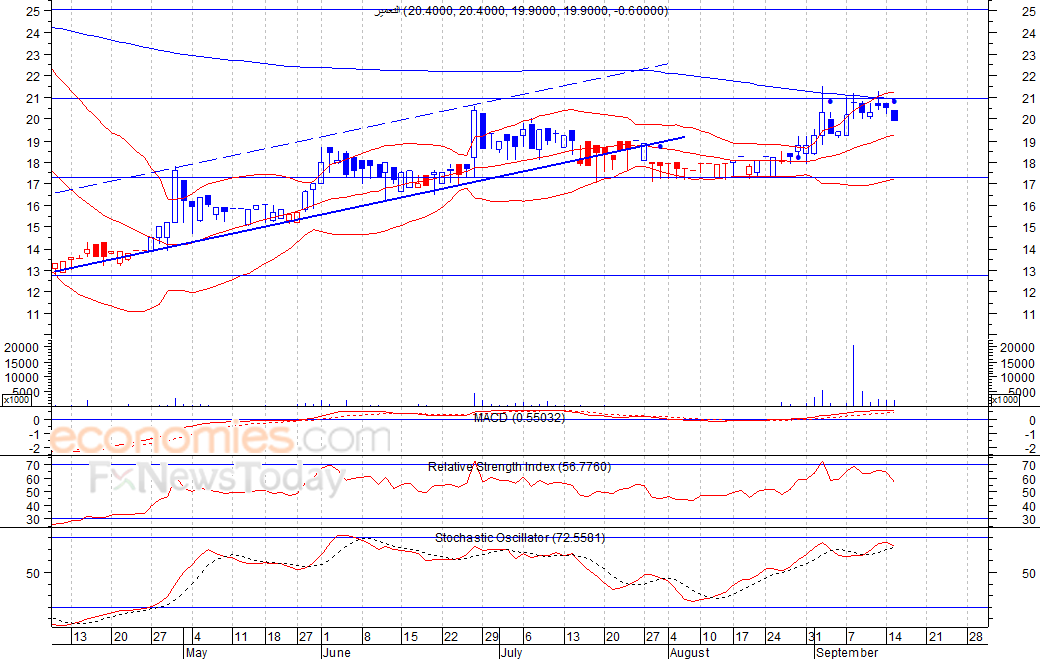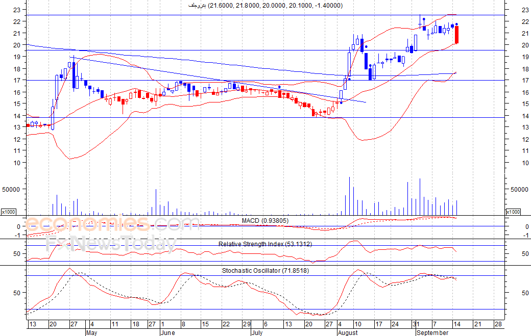 متوقع ان يكون النطاق السعري خلال اليوم الحالي بين مستوى الدعم هو 19.5 بينما مستوى المقاومة هو 21.3 فلس