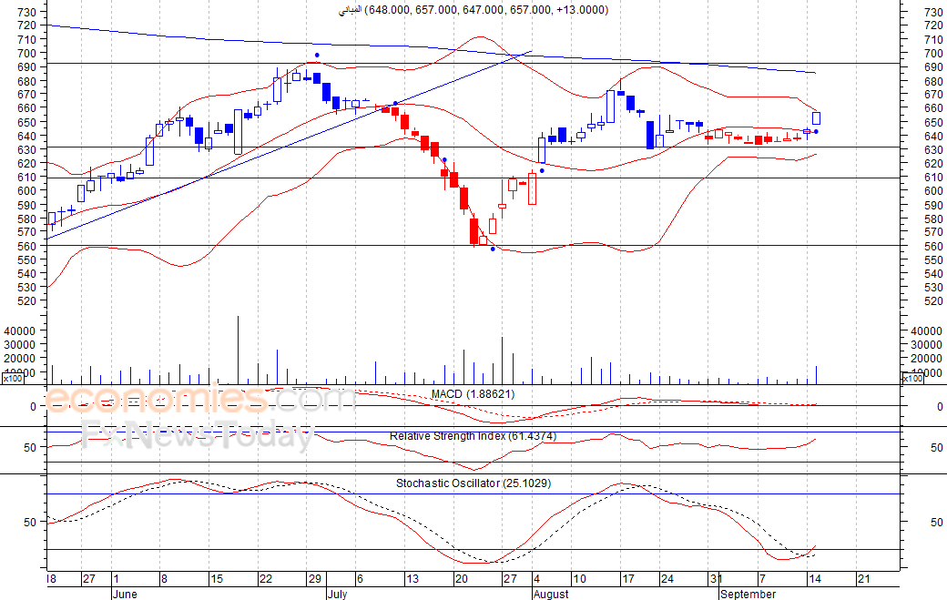 متوقع ان يكون النطاق السعري خلال اليوم الحالي بين مستوى الدعم هو 653 بينما مستوى المقاومة هو 663 فلس